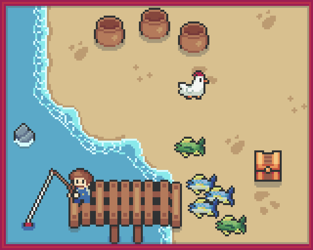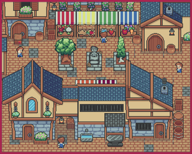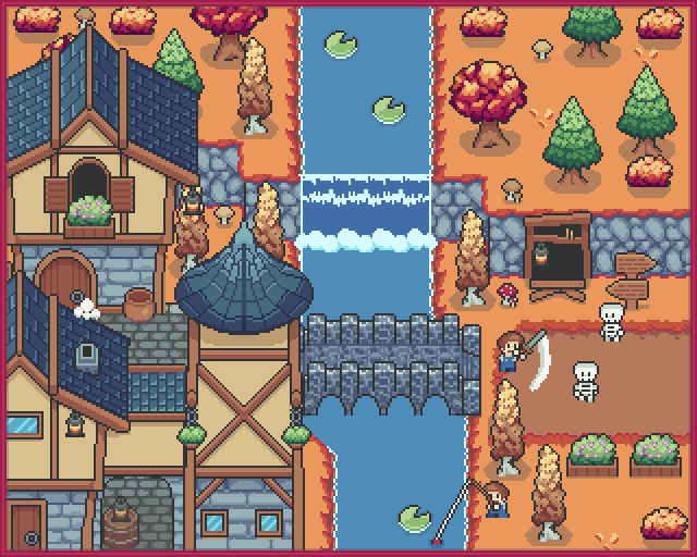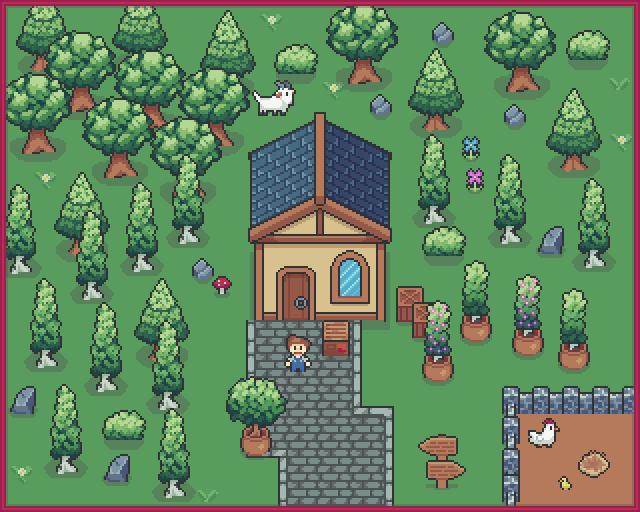 - Large variety of tiles such as grass, paths, dirt, river, ocean, cliff and more.
